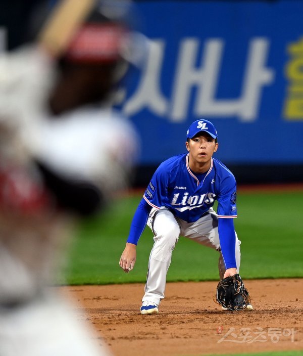 5일 경기도 수원 kt위즈파크에서 ‘2022 신한은행 SOL KBO리그’ kt 위즈와 삼성 라이온즈의 경기가 열렸다. 1회말 2사 1루에서 삼성 김영웅이 3루 수비를 펼치고 있다.