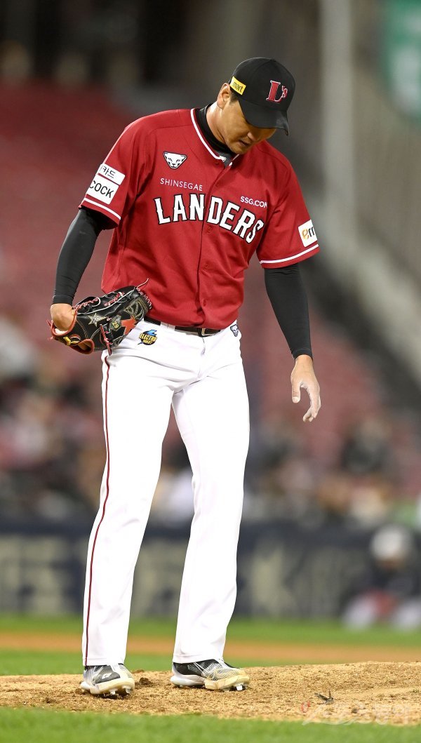 5일 서울 잠실야구장에서 ‘2022 신한은행 MY CAR KBO리그’ SSG 랜더스와 두산베어스 경기가 열렸다. 선발 투수로 등판한 SSG 김광현이 마운드에 날벌레를 바라보고 있다.