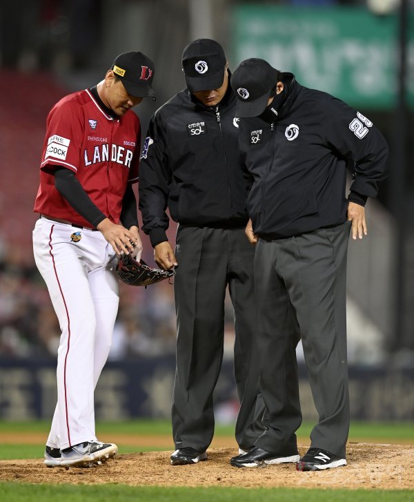 5일 서울 잠실야구장에서 ‘2022 신한은행 MY CAR KBO리그’ SSG 랜더스와 두산베어스 경기가 열렸다. 선발 투수로 등판한 SSG 김광현이 마운드에 날벌레를 바라보고 있다.