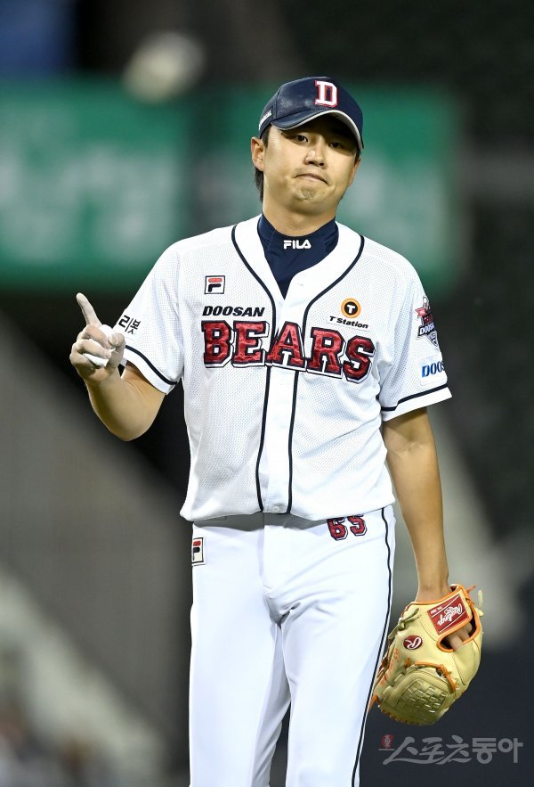 5일 서울 잠실야구장에서 ‘2022 신한은행 MY CAR KBO리그’ SSG 랜더스와 두산베어스 경기가 열렸다. 두산 정철원이 8회초 투구를 마친 후 포수를 향해 손짓하고 있다.