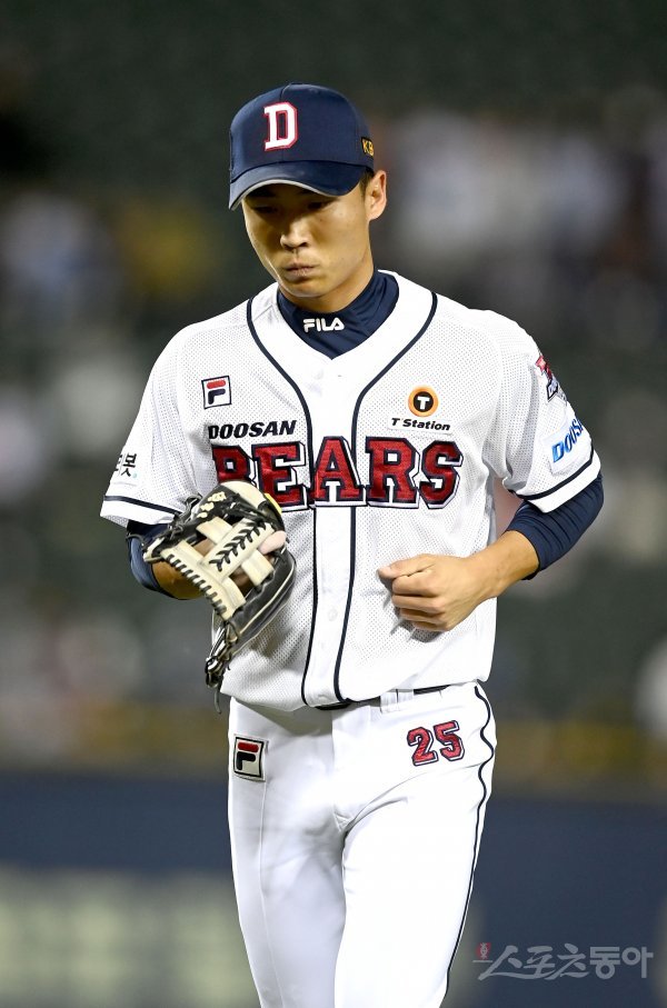 5일 서울 잠실야구장에서 ‘2022 신한은행 MY CAR KBO리그’ SSG 랜더스와 두산베어스 경기가 열렸다. 7회초 무사 1루 SSG 내야 땅볼 때 포구 실책을 한 두산 이유찬이 교체되고 있다.