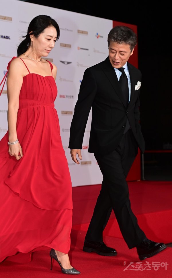 5일 부산 해운대구 우동 영화의전당에서 열린 ‘제27회 부산국제영화제’ 레드카펫 행사에서 조윤희, 권해효 부부가 입장하고 있다.