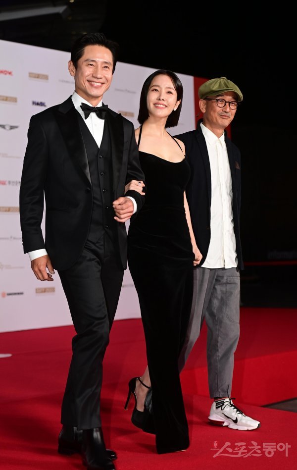 5일 부산 해운대구 우동 영화의전당에서 열린 ‘제27회 부산국제영화제’ 레드카펫 행사에서 배우 신하균, 한지민, 이준익 감독이 입장하고 있다.