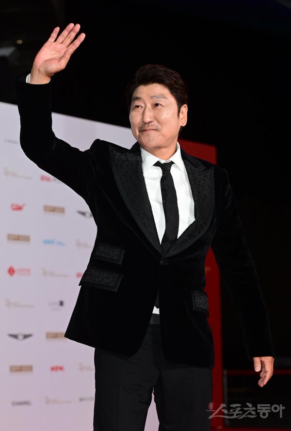 5일 부산 해운대구 우동 영화의전당에서 열린 ‘제27회 부산국제영화제’ 레드카펫 행사에서 배우 송강호가 팬들에게 인사하고 있다.