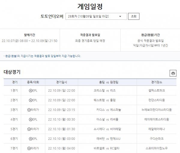 토토 언더오버 28회차 7일(금) 오전 8시부터 발매