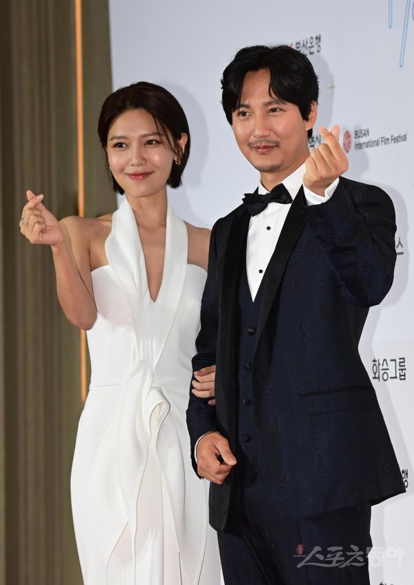 6일 부산 해운대구 중동 시그니엘 부산에서 열린 ‘제31회 2022 부일영화상’ 핸드프린팅 및 레드카펫 행사에서 배우 최수영, 김남길이 포즈를 취하고 있다.