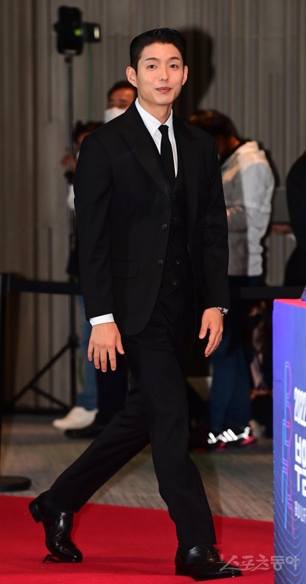 6일 부산 해운대구 중동 시그니엘 부산에서 열린 ‘제31회 2022 부일영화상’ 핸드프린팅 및 레드카펫 행사에서 배우 하준이 입장하고 있다.