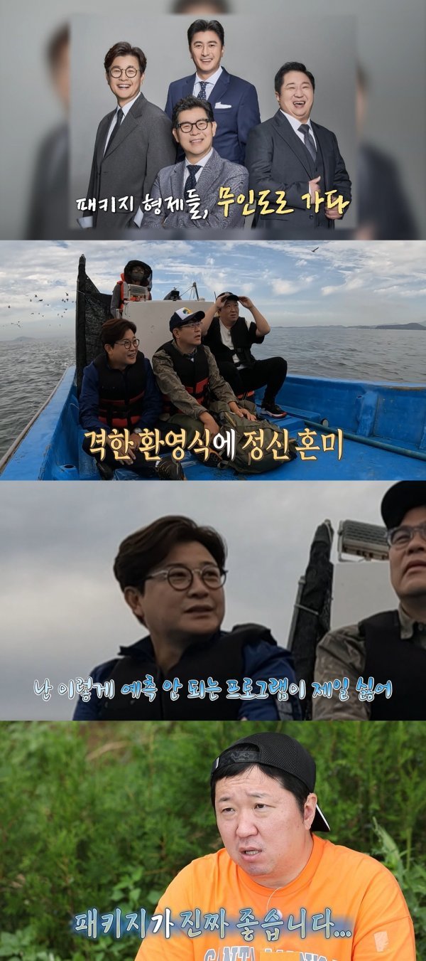 하지만 세 사람은 배에 오른 순간부터 예측할 수 없는 상황에 마주한다. 망망대해에 배가 멈추는가 하면, 거센 바닷바람에 눈조차 제대로 뜨지 못하는 것. 이에 김성주는 "이런 프로그램이 제일 싫다"며 앓는 소리를 낸다. 김용만 또한 "이게 리얼이구나"라며 날 것 그대로인 섬 스케일에 입을 다물지 못한다.