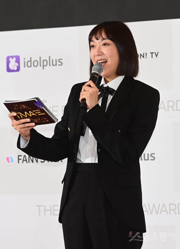 8일 서울 송파구 방이동 케이스포돔 올림픽체조경기장에서 열린 ‘2022 더팩트 뮤직 어워즈(TMA)’ 레드카펫 행사에서 개그우먼 이은형이 MC를 맡아 진행하고 있다.