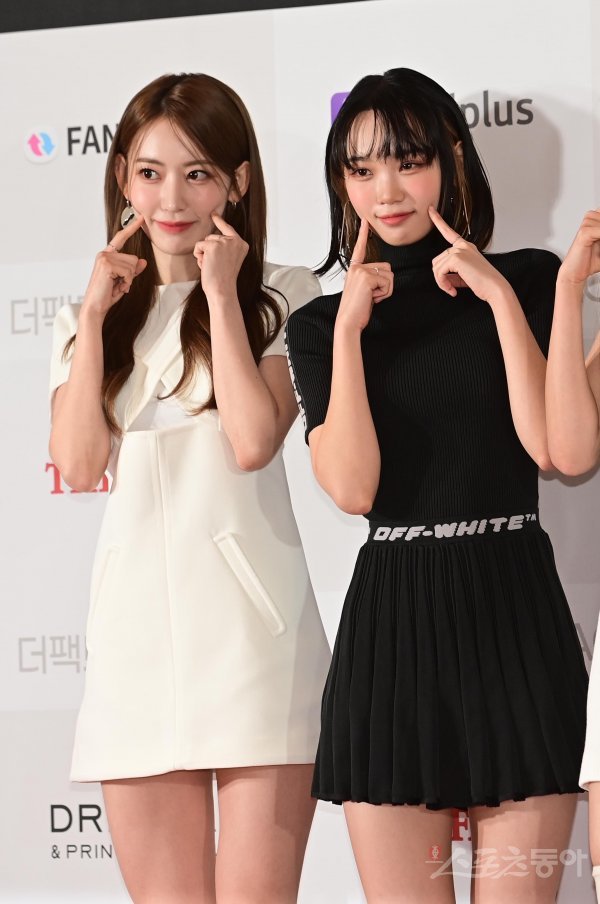 8일 서울 송파구 방이동 케이스포돔 올림픽체조경기장에서 열린 ‘2022 더팩트 뮤직 어워즈(TMA)’ 레드카펫 행사에서 르세라핌 사쿠라, 김채원이 포즈를 취하고 있다.