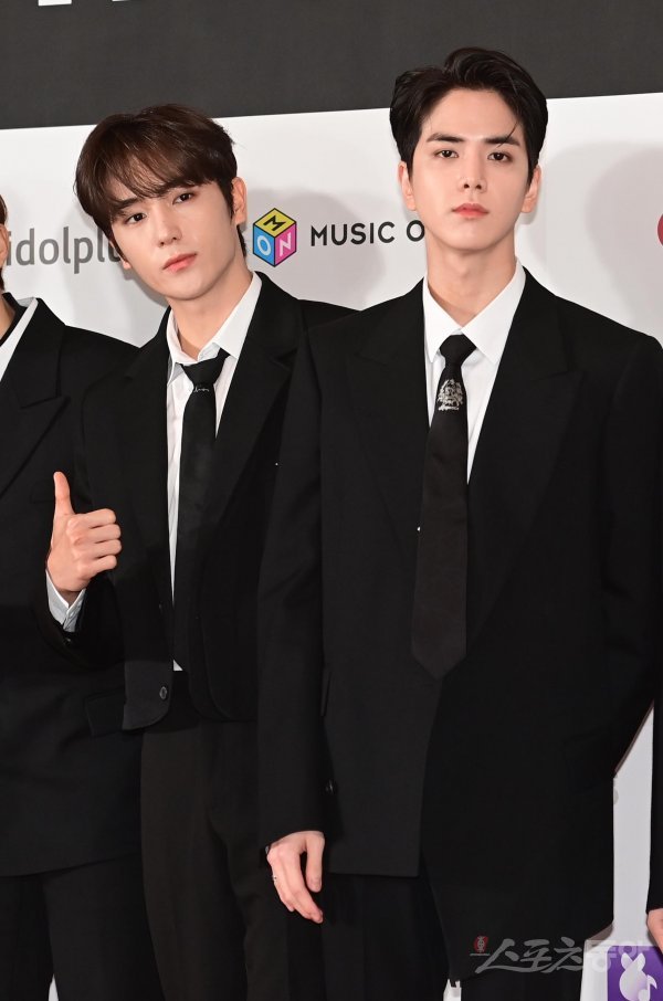 8일 서울 송파구 방이동 케이스포돔 올림픽체조경기장에서 열린 ‘2022 더팩트 뮤직 어워즈(TMA)’ 레드카펫 행사에서 더보이즈 현재, 영훈이 포즈를 취하고 있다.