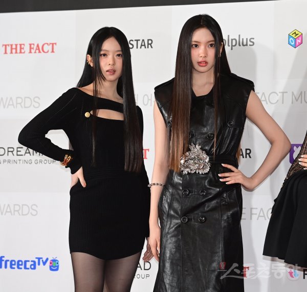 8일 서울 송파구 방이동 케이스포돔 올림픽체조경기장에서 열린 ‘2022 더팩트 뮤직 어워즈(TMA)’ 레드카펫 행사에서 뉴진스 하니, 혜인이 포즈를 취하고 있다.