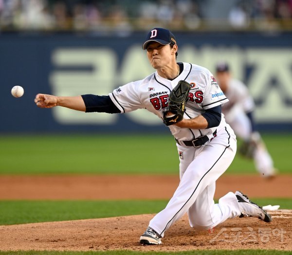 8일 서울 잠실야구장에서 ‘2022 신한은행 MY CAR KBO리그’ 키움 히어로즈와 두산 베어스 경기가 열렸다. 선발 투수로 등판한 두산 최원준이 역투하고 있다.