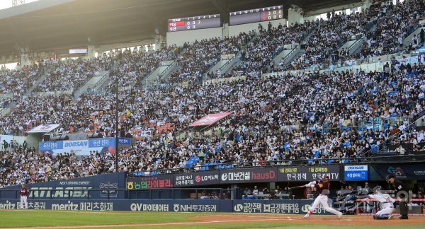 8일 서울 잠실야구장에서 ‘2022 신한은행 MY CAR KBO리그’ 키움 히어로즈와 두산 베어스 경기가 만원 관중이 입장한 가운데 열렸다.
