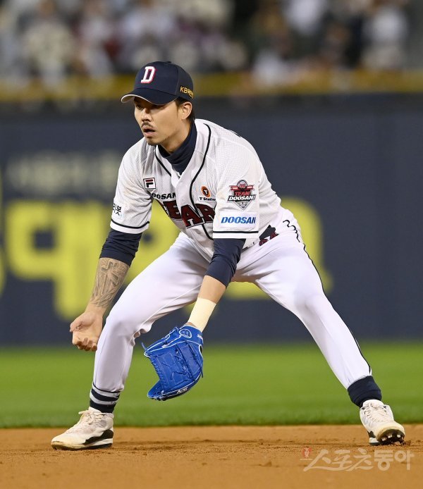 8일 서울 잠실야구장에서 ‘2022 신한은행 MY CAR KBO리그’ 키움 히어로즈와 두산 베어스 경기가 열렸다. 9회초 두산 오재원이 2루수로 출전하고 있다.
