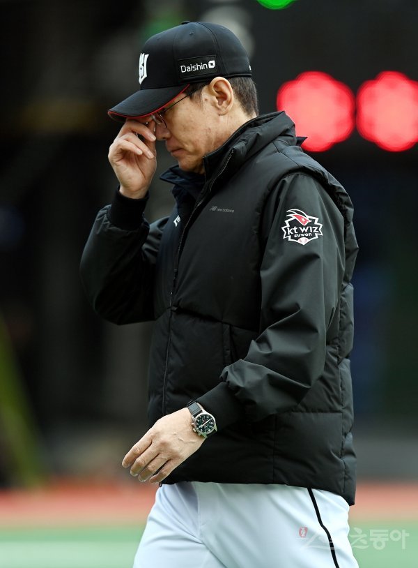 10일 경기도 수원 kt위즈파크에서 ‘2022 신한은행 SOL KBO리그’ kt 위즈와 NC 다이노스의 경기가 열렸다. 3회초 2사 1, 2루에서 kt 이강철 감독이 마운드에 오른 후 더그아웃으로 향하고 있다.