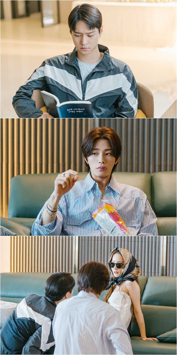 정지호는 강해진의 존재를 신경도 쓰고 싶지 않다는 듯 애써 독서에 집중하고 있는 모습. 이런 상황이 탐탁지 않은 강해진도 못마땅한 얼굴로 정지호에 대한 경계심을 내비치고 있다.