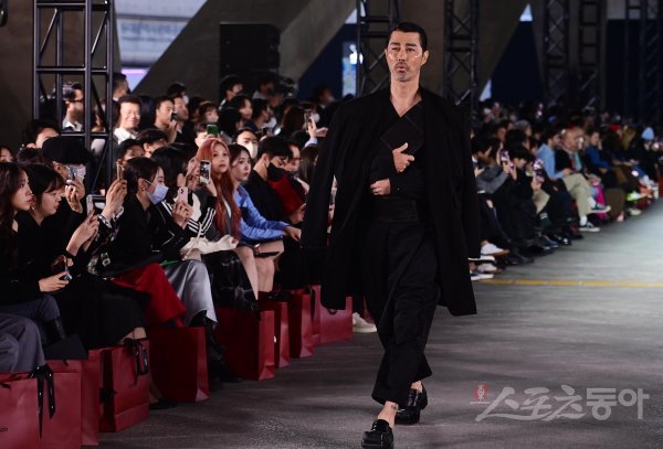 11일 서울 중구 동대문디자인플라자에서 열린 ‘2023 S/S 서울패션위크’ 개막쇼에서 배우 겸 모델 차승원이 런웨이를 걷고 있다.