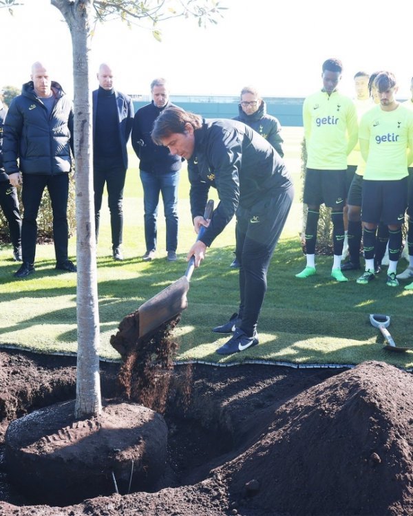 손흥민(30)의 소속팀 토트넘(잉글랜드)이 급성 백혈병으로 세상을 떠난 잔 피에로 벤트로네 코치를 추모하기 위해 나무를 심었다. 토트넘은 11일(한국시간) 구단 홈페이지를 통해 고인을 기리기 위해 안토니오 콘테 감독과 코칭스태프, 선수단이 훈련장에 나무를 심었다고 밝혔다. 선수시절부터 30년 가까이 특별한 연을 맺어온 콘테 감독은 직접 흙을 퍼 나무를 심고, 1분간 묵념도 했다. 6일 별세한 벤트로네 코치는 지난해 11월 토트넘에 합류해 올 6월 토트넘의 한국 투어 당시 혹독한 체력훈련으로 주목받았다.