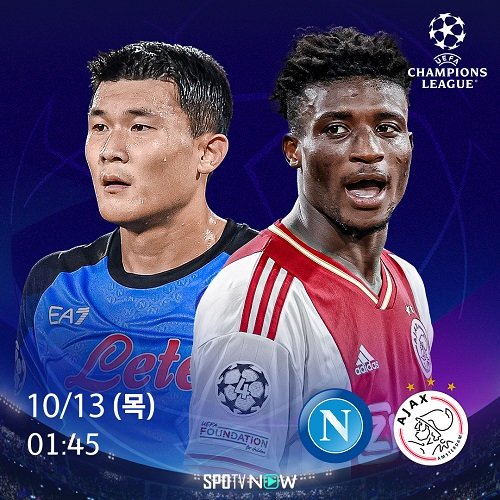 나폴리 대 아약스 경기는 13일 새벽 1시 45분 스포티비 온(SPOTV ON)과 스포티비 나우(SPOTV NOW)에서 독점 생중계되며, 새벽 4시 킥오프 예정인 토트넘 대 프랑크푸르트 경기 역시 같은 채널에서 시청할 수 있다.
