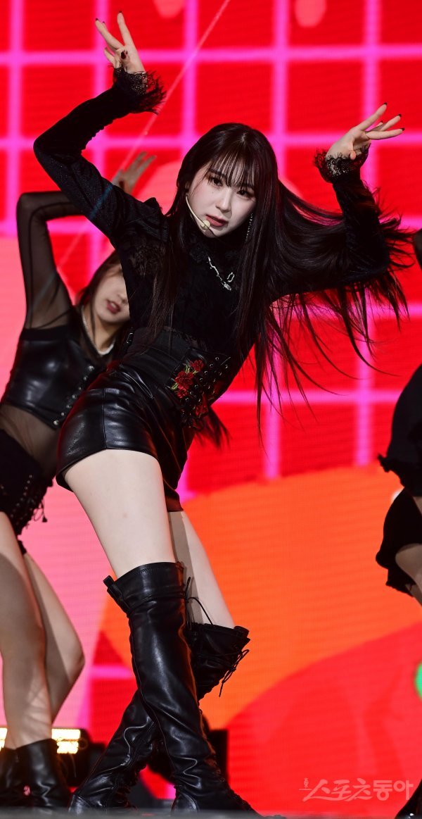 가수 이채연이 12일 서울 광진구 광장동 예스24라이브홀에서 열린 첫 번째 미니앨범 ‘HUSH RUSH’ 발매 기념 프레스 쇼케이스에서 동명의 타이틀곡 무대를 펼치고 있다. m