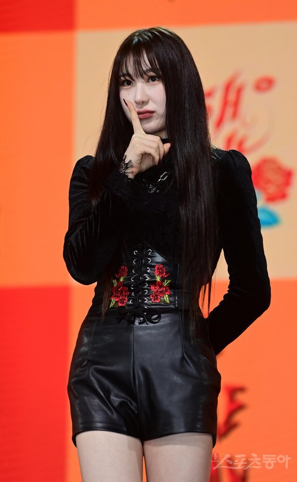 가수 이채연이 12일 서울 광진구 광장동 예스24라이브홀에서 열린 첫 번째 미니앨범 ‘HUSH RUSH’ 발매 기념 프레스 쇼케이스에서 포즈를 취하고 있다.