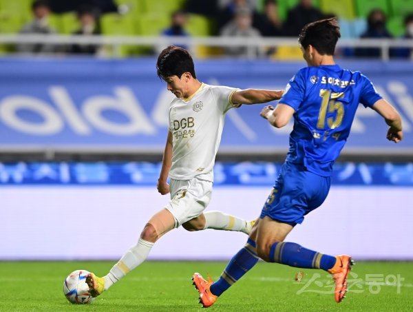 12일 경기도 수원월드컵경기장에서 열린 ‘하나원큐 K리그1 2022’ 수원 삼성과 대구 FC의 경기에서 대구 고재현이 선제골을 성공시키고 있다.