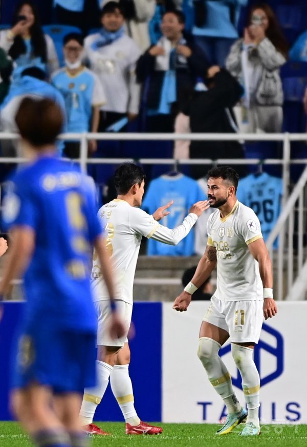 12일 경기도 수원월드컵경기장에서 열린 ‘하나원큐 K리그1 2022’ 수원 삼성과 대구 FC의 경기에서 대구 세징야가 추가골을 성공시킨 후 동료들과 기쁨을 나누고 있다.