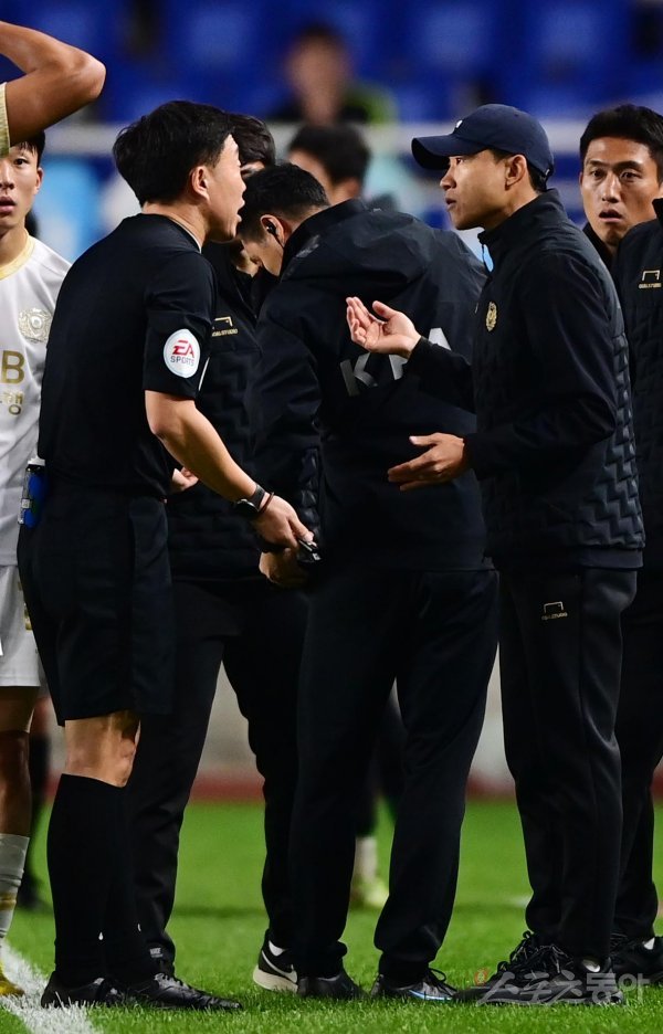 12일 경기도 수원월드컵경기장에서 열린 ‘하나원큐 K리그1 2022’ 수원 삼성과 대구 FC의 경기에서 대구 최원권 감독대행이 심판에게 어필하고 있다.