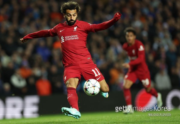 살라흐는 스코틀랜드 글래스고 아이브록스 경기장에서 열린 레인저스(스코틀랜드)와 2022~2023시즌 UCL 조별리그 A조 4차전 원정 경기에 후반 23분 교체 출전해 불과 6분여 만에 3골을 몰아쳤다.