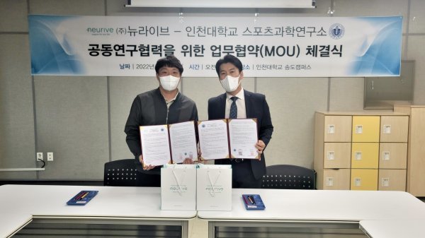 고려대구로병원 자회사인 뉴라이브(대표이사 송재준 이비인후과 교수)는 최근 인천대 스포츠과학연구소와 학술 및 공동연구 업무협약(MOU)를 체결했다.