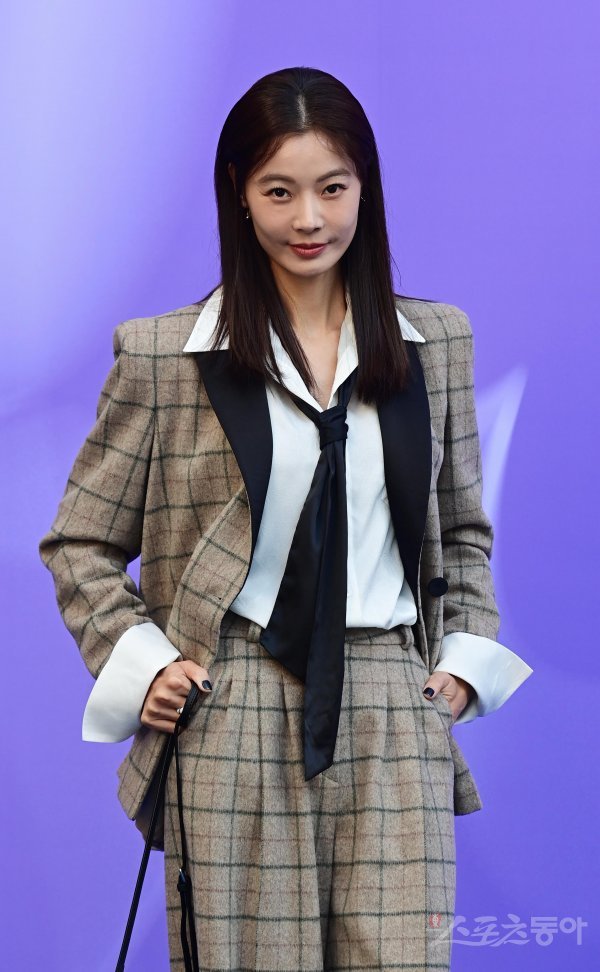 13일 서울 중구 동대문디자인플라자에서 열린 ‘2023 S/S 서울패션위크’ 포토월에서 배우 윤소이가 포즈를 취하고 있다.