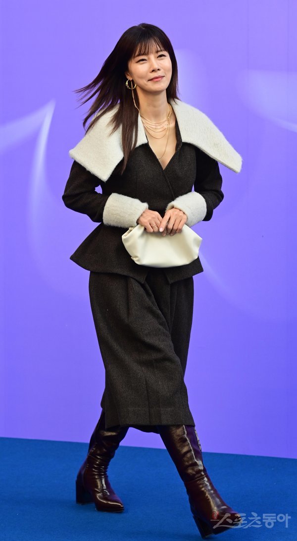 13일 서울 중구 동대문디자인플라자에서 열린 ‘2023 S/S 서울패션위크’ 포토월에서 배우 유선이 입장하고 있다.