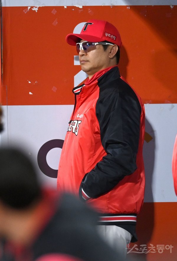 13일 수원KT위즈파크에서 ‘2022 신한은행 MY CAR KBO리그’ 와일드카드 결정 1차전 KIA 타이거즈와 KT 위즈 경기가 열렸다. KIA 김종국 감독이 경기를 바라보고 있다.