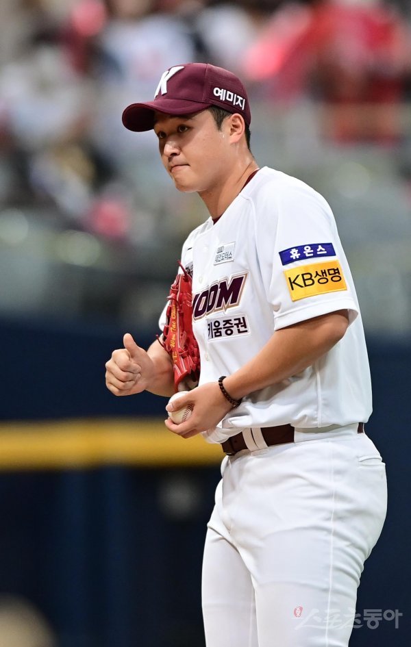 16일 서울 고척스카이돔에서 열린 ‘2022 신한은행 SOL KBO리그’ 준 플레이오프 1차전 키움 히어로즈와 KT 위즈의 경기에서 7회초 1사 1, 2루 KT에 2타점 좌전 2루타를 허용한 키움 최원태가 아쉬워하고 있다.