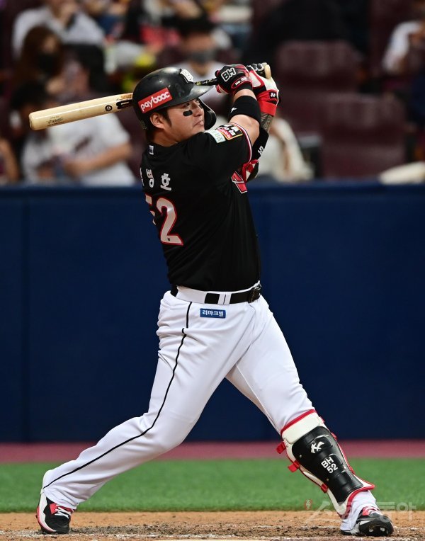 16일 서울 고척스카이돔에서 열린 ‘2022 신한은행 SOL KBO리그’ 준 플레이오프 1차전 키움 히어로즈와 KT 위즈의 경기에서 7회초 무사 KT 박병호가 중월 솔로 홈런을 치고 있다.