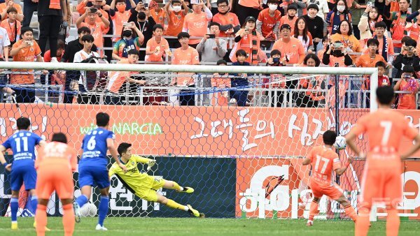 16일 춘천송암스포츠타운에서 열린 프로축구 ‘하나원큐 K리그1 2022’ 강원FC와 울산현대 경기에서 강원 김대원이 패널티킥으로 선제골을 성공시키고 있다.