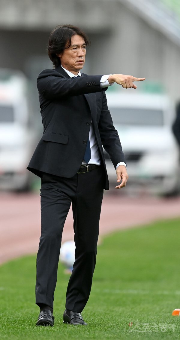 16일 춘천송암스포츠타운에서 열린 프로축구 ‘하나원큐 K리그1 2022’ 강원FC와 울산현대 경기에서 울산 홍명보 감독이 작전 지시를 하고 있다.