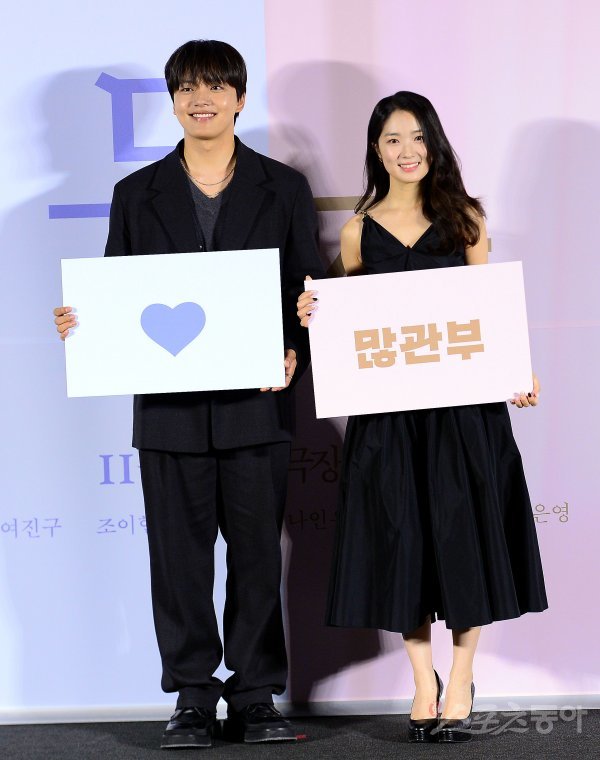 17일 서울 용산구 CGV 용산아이파크몰에서 열린 영화 ‘동감’ 제작보고회에서 여진구와 김혜윤이 포즈를 취하고 있다.