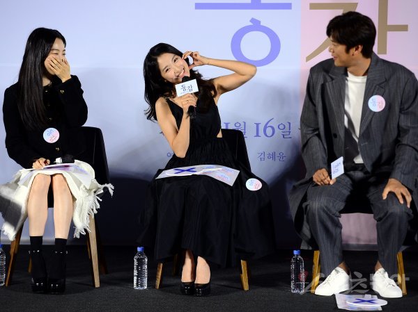 17일 서울 용산구 CGV 용산아이파크몰에서 열린 영화 ‘동감’ 제작보고회에서 김혜윤이 귀여운 포즈를 취하고 있다.