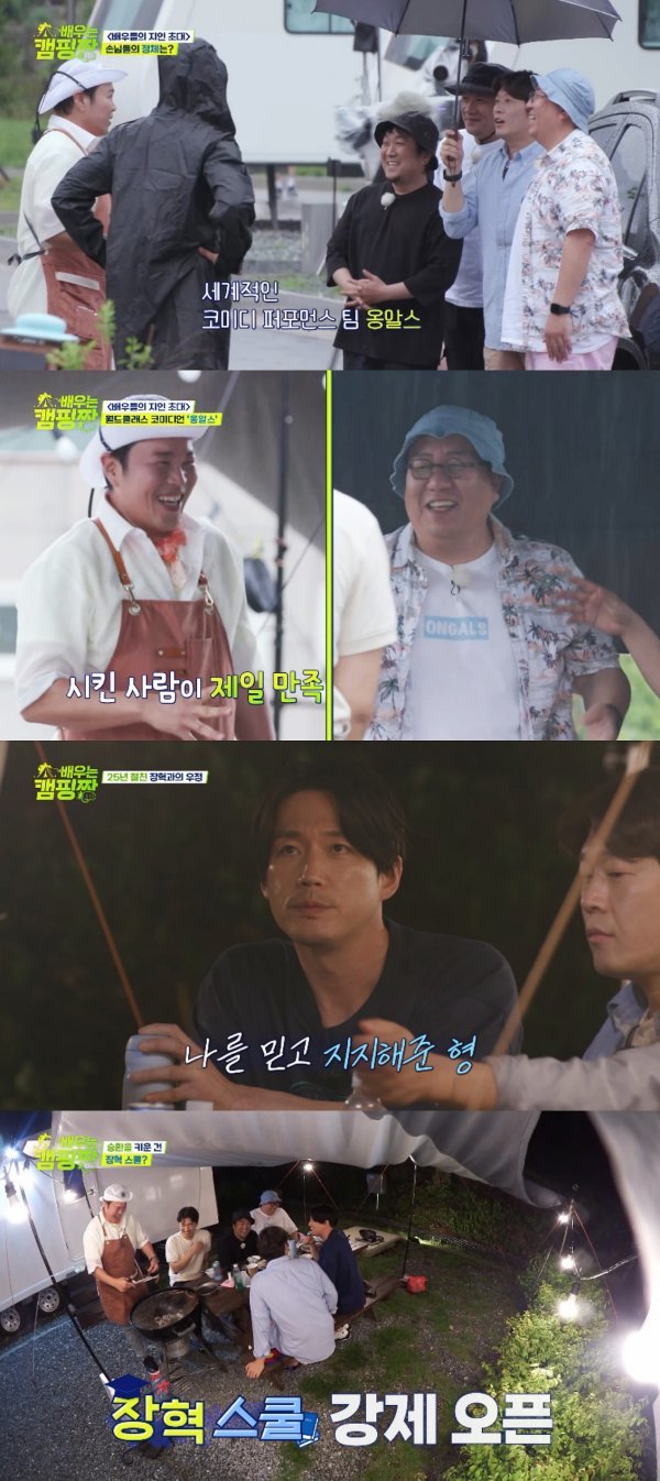 뒤늦게 캠핑장을 방문한 장혁은 저녁 식사 시간에 맞춰 특별 인생 강의를 펼친다. 그는 평소 전화를 걸면 기본 2시간 동안 이야기를 이어간다는 신승환의 폭로에도 아랑곳하지 않고 “너는 고기를 구워. 형은 얘기를 할게”라는 말과 함께 수다 모터에 시동을 건다고.