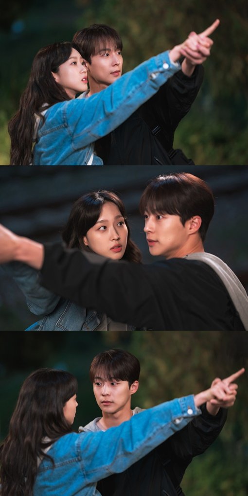 사진 속 배인혁은 극 중 천문우주학과 재학생답게 한지현에게 여름에 제일 잘 보이는 별자리를 손가락으로 가리키며 설명하고 있다. 그러던 중 배인혁이 웃으며 한지현의 손목을 잡게 되자 갑작스러운 스킨십에 당황한 듯 한지현이 깜짝 놀라 멈칫하는 것. 급기야 배인혁은 자신을 보고 있는 한지현의 시선을 느끼고 이와 함께 아이컨택을 주고받는 두 사람의 로맨틱한 분위기가 완성돼 설렘을 안긴다.
