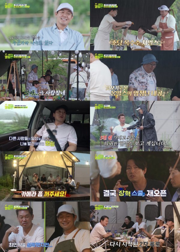 또한, 박성웅과 정만식은 함께 캠핑장 영업에 대한 진솔한 이야기를 나누며 뜻 깊은 시간을 보내는 한편, 홍종현과 그의 친구들 4인방은 절친 호흡을 과시하며 캠핑장에 활력을 돋웠다. 그런가 하면 홍종현의 미담이 오가던 중 그의 진지 모드를 발견한 폴킴이 카메라 ‘울렁증설’을 제기, 실제로 카메라가 모두 꺼지는 해프닝이 벌어져 현실 웃음을 유발했다.