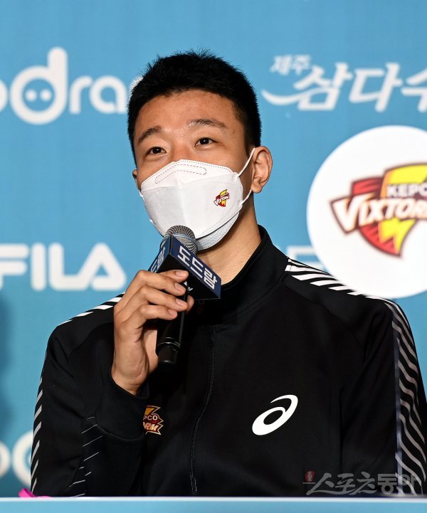 18일 서울 청담동 리베라호텔에서 열린 ‘2022-2023 도드람 V리그’ 남자부 미디어데이에서 한국전력 신영석이 인터뷰를 펼치고 있다.