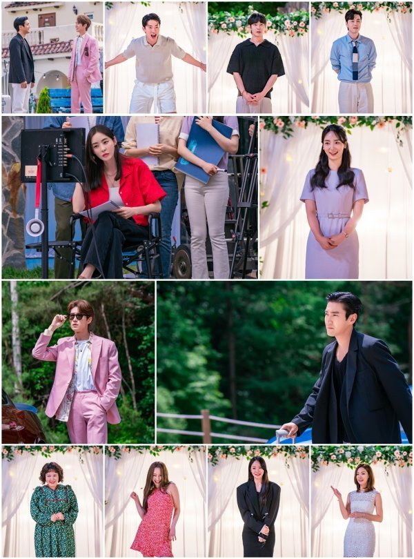 극 중 구여름(이다희 분) PD의 슛 소리와 함께 박재훈(최시원 분)과 존장(박연우 분), 한지연(이주연 분) 등 주요 출연자가 등장하는 장면이다. 박재훈은 검은 정장을 입고 캐리어를 끌며 위풍당당하게 올라오고, 고급 외제차에서 내린 존장 역시 핑크 슈트에 선글라스 아이템을 매치해 시선을 강탈한다.
