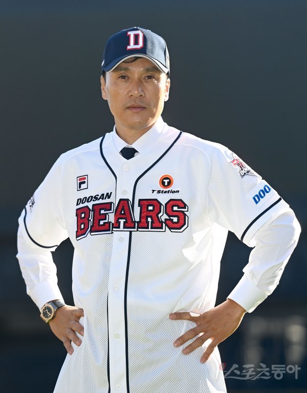 두산 베어스 제11대 사령탑 이승엽 감독이 18일 서울 잠실야구장에서 진행된 취임식을 마친 후 포토타임을 갖고 있다.