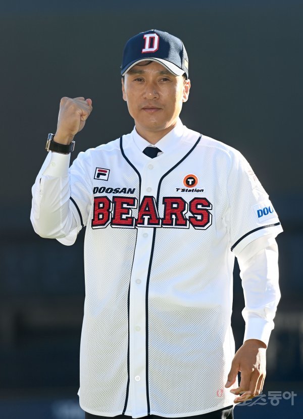 두산 베어스 제11대 사령탑 이승엽 감독이 18일 서울 잠실야구장에서 진행된 취임식을 마친 후 포토타임을 갖고 있다.