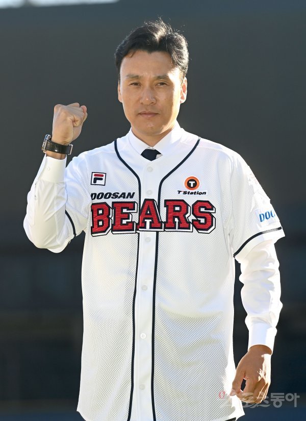 두산 베어스 제11대 사령탑 이승엽 감독이 18일 서울 잠실야구장에서 진행된 취임식을 마친 후 포토타임을 갖고 있다.