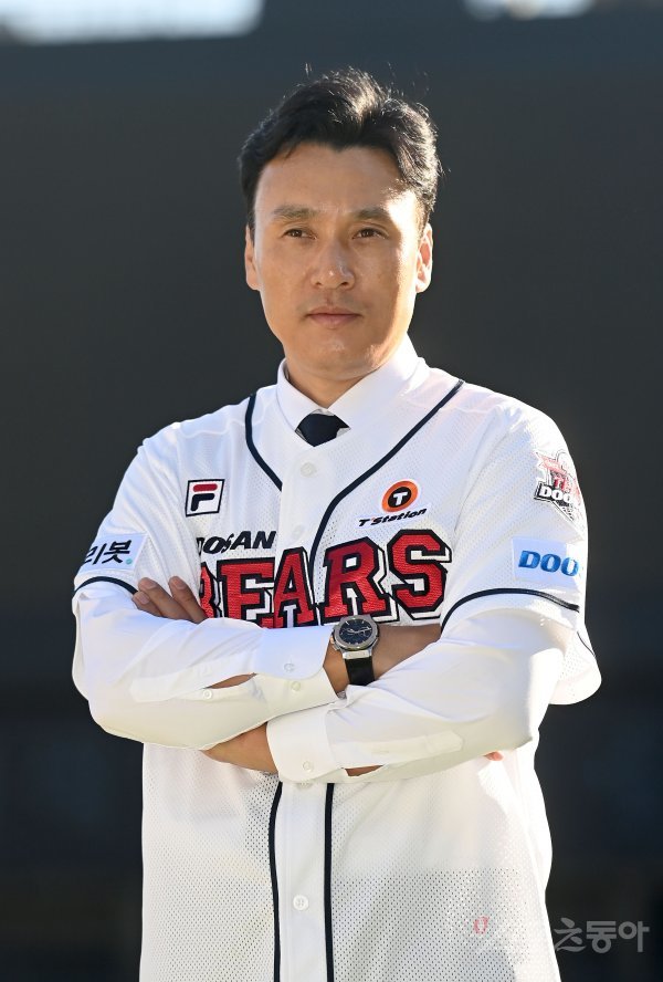 두산 베어스 제11대 사령탑 이승엽 감독이 18일 서울 잠실야구장에서 진행된 취임식을 마친 후 포토타임을 갖고 있다.