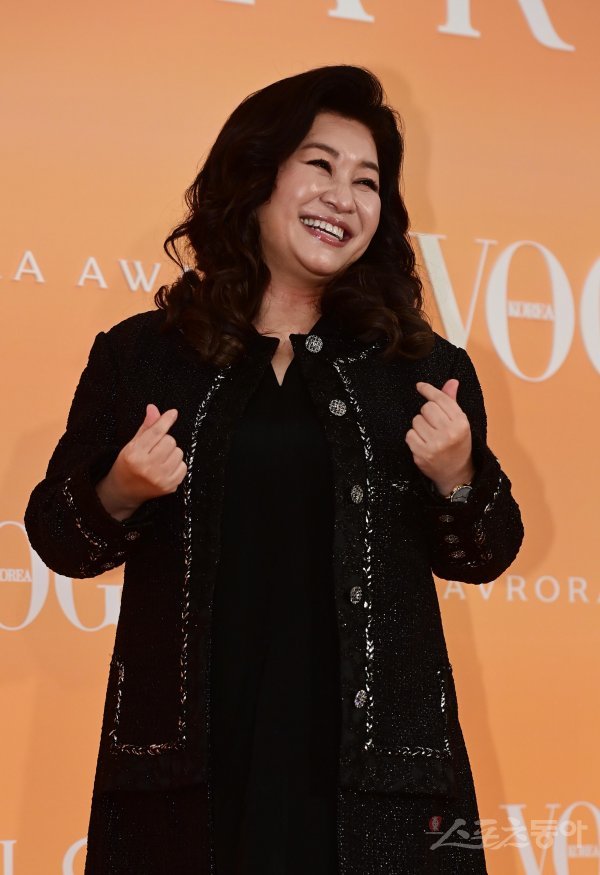 박사 오은영이 18일 서울 광진구 광장동 그랜드워커힐서울에서 열린 한 럭셔리 주얼리 브랜드의 시상식 포토월에서 포즈를 취하고 있다.